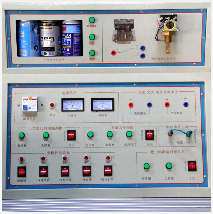 LG-TZL02制冷與空調運行操作實(shí)訓設備根據《制冷與空調設備運行操作作業(yè)安全技術(shù)實(shí)際操作考試標準》研發(fā)。采用蒸汽壓縮式制冷循環(huán)系統,配備全封閉式制冷壓縮機、冷凝器、蒸發(fā)器等制冷系統真實(shí)部件,并設有智能溫度調節儀、流量計、壓力表、電壓表、電流表等測量?jì)x表??己艘詫?shí)際操作、仿真模擬操作完成。