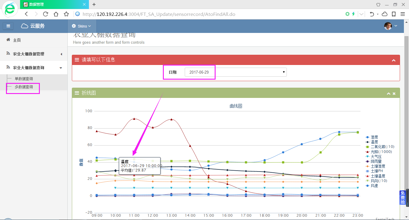 web端功能:具有多用戶(hù)管理、大棚網(wǎng)關(guān)設備的增刪改查、傳感器設備的增刪改查、傳感器采樣數據的實(shí)時(shí)顯示、執行器的手動(dòng)開(kāi)關(guān)、農業(yè)場(chǎng)景自控策略設置、報警記錄查詢(xún)、歷史數據按照時(shí)間段以表格/曲線(xiàn)方式展示、數據導出excel文件、IP/關(guān)鍵詞地圖定位等功能,還具有服務(wù)器地址編輯和自動(dòng)切換功能。
