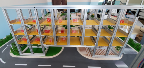 倉儲環(huán)節主要模擬產(chǎn)品出入倉庫、物品貨架庫位的自動(dòng)識別、物品信息自動(dòng)盤(pán)點(diǎn)等功能。該環(huán)節有兩種展示形式,一種是實(shí)際倉儲方式,一種在沙盤(pán)上模擬。