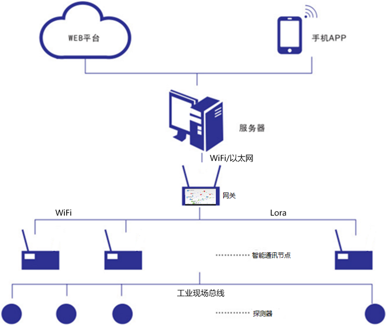 由空氣質(zhì)量傳感器、粉塵傳感器、噪音傳感器、智能通信節點(diǎn)等組成,具有空氣質(zhì)量監測、揚塵監測、噪音監測功能。智能通信節點(diǎn)與網(wǎng)關(guān)互聯(lián)互通,上報環(huán)境監測數據,通過(guò)網(wǎng)關(guān)發(fā)布到云平臺展示。