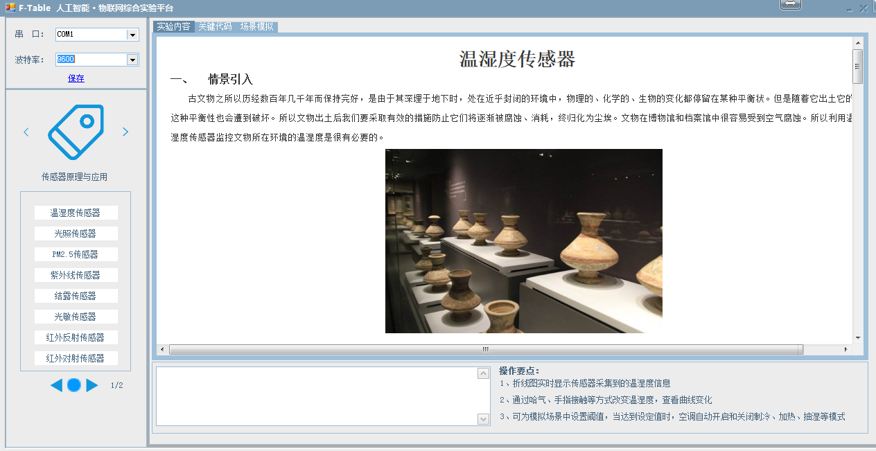 在C#軟件上有每一個(gè)教學(xué)實(shí)驗資源,包含實(shí)驗目的,實(shí)驗原理,實(shí)驗內容,實(shí)驗步驟,實(shí)驗過(guò)程,實(shí)驗現象以及對應場(chǎng)景應用,能夠讓學(xué)生不僅學(xué)習傳感器概念,原理,開(kāi)發(fā),還能學(xué)以致用。