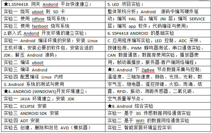 7、基于 WiFi/BT 的網(wǎng)絡(luò )通信開(kāi)發(fā):可以開(kāi)展 WiFi/BT 通信原理、WiFi/BT 模塊驅動(dòng)開(kāi)發(fā)、WiFi/BT 模塊原理設計、WiFi/BT 互聯(lián)網(wǎng)接入、WiFi/BT 移動(dòng)通信與物聯(lián)網(wǎng)應用開(kāi)發(fā)等。