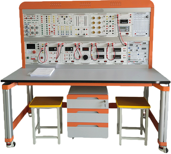 電工電子電拖綜合實(shí)驗平臺由實(shí)驗桌、實(shí)驗臺架、存儲柜、實(shí)驗掛箱組件、配件等組成。