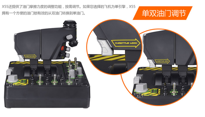 民航:塞斯納YOKE搖桿、腳跺、飛行儀表裝置等 戰斗機:套賽鈦客X-55(左手油門(mén)桿、搖桿) |