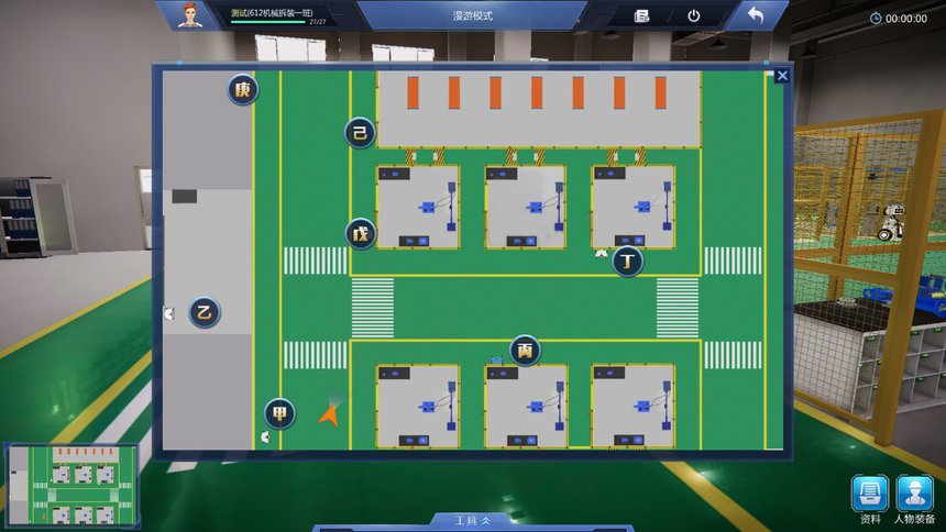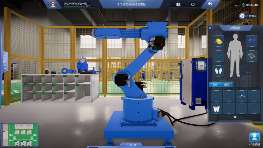 9、友好操作體驗設計:設置專(zhuān)用工具欄,可以通過(guò)工具欄中的快捷鍵快速選擇工具,提高實(shí)訓系統使用效率,同時(shí)加深對工具的認識。地圖及快速跳轉、箭頭指示多形式導航,通過(guò)小地圖實(shí)現快速跳轉到機器人NPC獲得指引。地標指引箭頭,有效提示下一任務(wù)的操作位置。