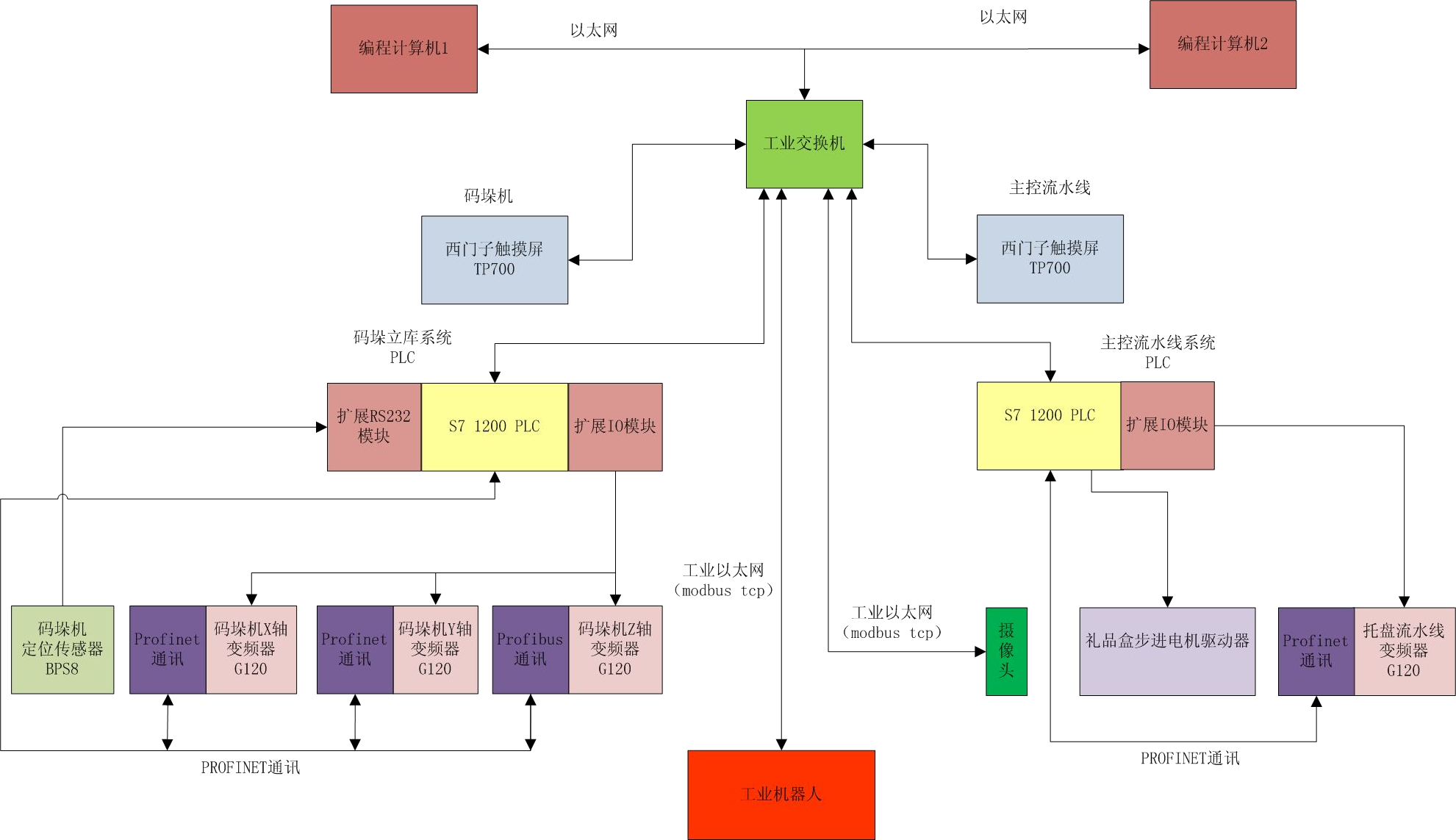 (5) 視覺(jué)系統,對托盤(pán)流水線(xiàn)上的托盤(pán)上的物品進(jìn)行識別,并把識別結果發(fā)送至主控系統的PLC;