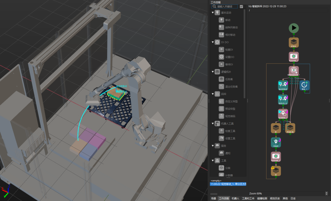 完全圖形化的視覺(jué)軟件,無(wú)需編寫(xiě)代碼即可完成拆垛、無(wú)序工件上料等視覺(jué)應用。