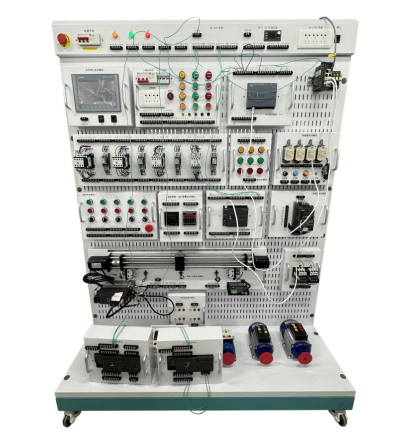 一、設備功能與結構 電工綜合實(shí)訓考核設備由PLC電氣控制應用平臺、電力拖動(dòng)安裝平臺、立式塑膠機控制電路故障診斷實(shí)訓平臺、電腦桌、裝配桌、實(shí)訓儀表工具等組成...