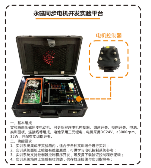 一、產(chǎn)品功能: 基于純電動(dòng)汽車(chē)永磁電機控制系統,采用永磁直流電機、電機驅動(dòng)器、智能工況模擬系統、動(dòng)力電池系統、整車(chē)控制器系統、組合儀表、系統工作參數顯...