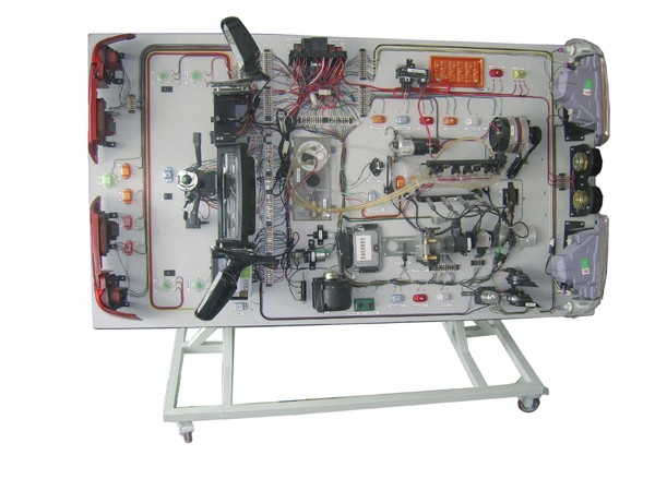 外形尺寸:1500*600*2000mm 組成:燈光系統元器件、組合儀表及移動(dòng)式滾輪臺架。 1.帶燈光系統電路圖面板,平面布置各個(gè)元器件,使燈光系統清楚可見(jiàn)。 2.面板帶檢測端子...