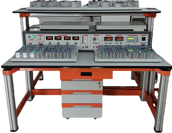電源儀表控制屏箱體采用鐵質(zhì)雙層亞光密紋噴塑結構,鋼質(zhì)面板。左邊是安全控制、交直流電源、信號源、測量電表等;右邊是示波器等儀器放置箱,并配有多組外部?jì)x器交流工作電源箱。