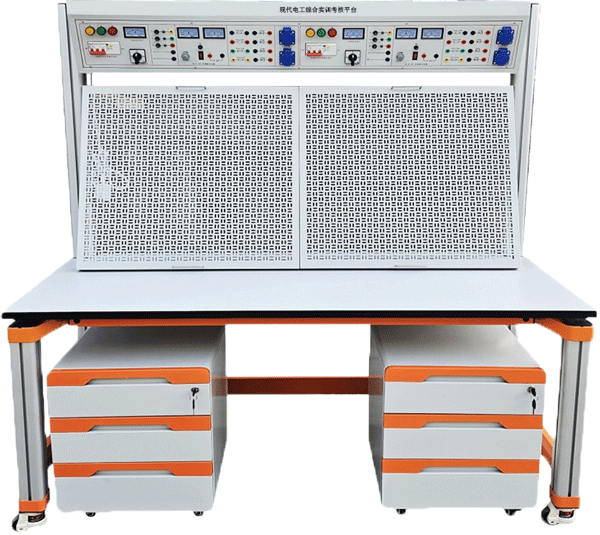現代電工綜合實(shí)訓考核實(shí)訓臺由實(shí)訓屏(內置電源)、實(shí)訓桌、實(shí)訓儲物柜三大部分組成。