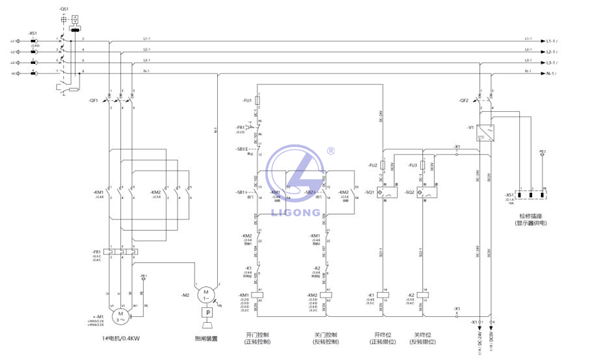 配備一套三相電動(dòng)機正反轉電氣回路,外接模擬裝置,模擬船閘工作閘門(mén)的啟閉 動(dòng)作。模擬器上設有兩套機械式限位開(kāi)關(guān),限制工作閘門(mén)的動(dòng)作。電氣回路將被設置 不同的故障點(diǎn),例如短路、過(guò)載、斷路、接地、接線(xiàn)錯誤、器件損壞等故障,參賽選 手須在規定的時(shí)間內完成電氣回路的故障點(diǎn)排查,實(shí)現工作閘門(mén)的手動(dòng)正常開(kāi)啟、關(guān) 閉以及到位停機功能。