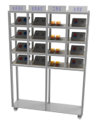 貨位數量:4 行×4 列 16 個(gè)貨位 整體尺寸:1640×400×1800mm 貨位傳感器:光電式、二維碼 材料:鋁型材 托盤(pán):尼龍塑料定制 |