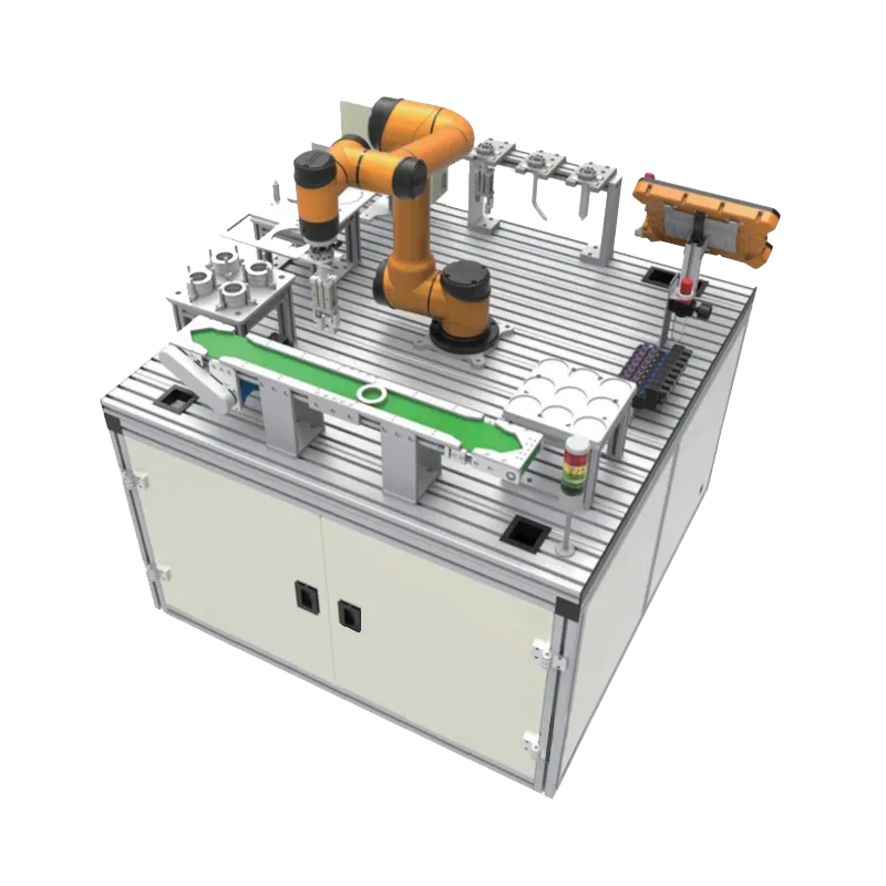 工作臺整體由兩個(gè)基礎臺拼接而成,更具空間靈活,拆卸方便等特點(diǎn)。臺面采用標準鋁型材,機器人 及功能模塊可根據需求改變布局位置,所有功能模塊采用手擰螺栓方式固定,可實(shí)現無(wú)工具快速拆裝與更 換。每個(gè)模塊電氣部分配置了獨立的電氣接線(xiàn)盒和快速航插,可實(shí)現模塊整體機械和電氣快速安裝部署, 還可根據需求更換或添加功能模塊進(jìn)行功能擴展。
