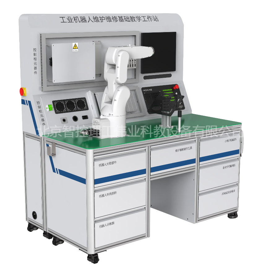 工業(yè)機器人維護維修基礎教學(xué)工作站,以工業(yè)機器人本體及其控制系統最常見(jiàn)維護維修操作為核心,通過(guò)對典型故障的診斷和排除,按照規范步驟完成對工業(yè)機器人本體的拆裝過(guò)程,并根據圖紙要求搭建控制系統并接線(xiàn),由零件級深入了解工業(yè)機器人的構成形式和運動(dòng)方式,掌握基礎維護維修技能。工作站配套了與生產(chǎn)廠(chǎng)家完全相同的工裝、工具,讓學(xué)生可以在教學(xué)環(huán)境中充分體驗高精度機電設備的生產(chǎn)工藝要求,確實(shí)掌握維護維修技能。