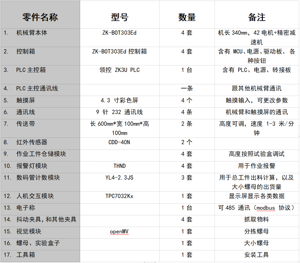 其他:包括系統實(shí)訓臺、控制按鈕與連接器盒、不同大小螺母、走線(xiàn)槽等氣路系統組成。