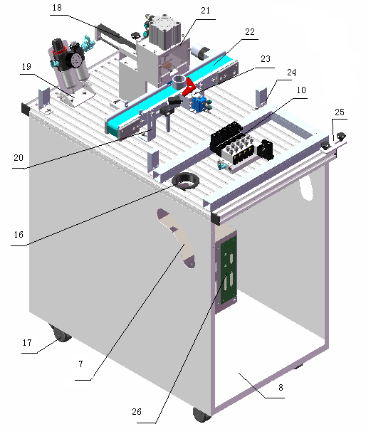 該系統的各站是安裝在帶槽的鋁型板上,各站可容易的連接在一起組成一條自動(dòng)加工生產(chǎn)線(xiàn)。站內由各種模塊化形式構成,各模塊之間易于搭建、拆卸和維護,各工作站之間可隨意組合。