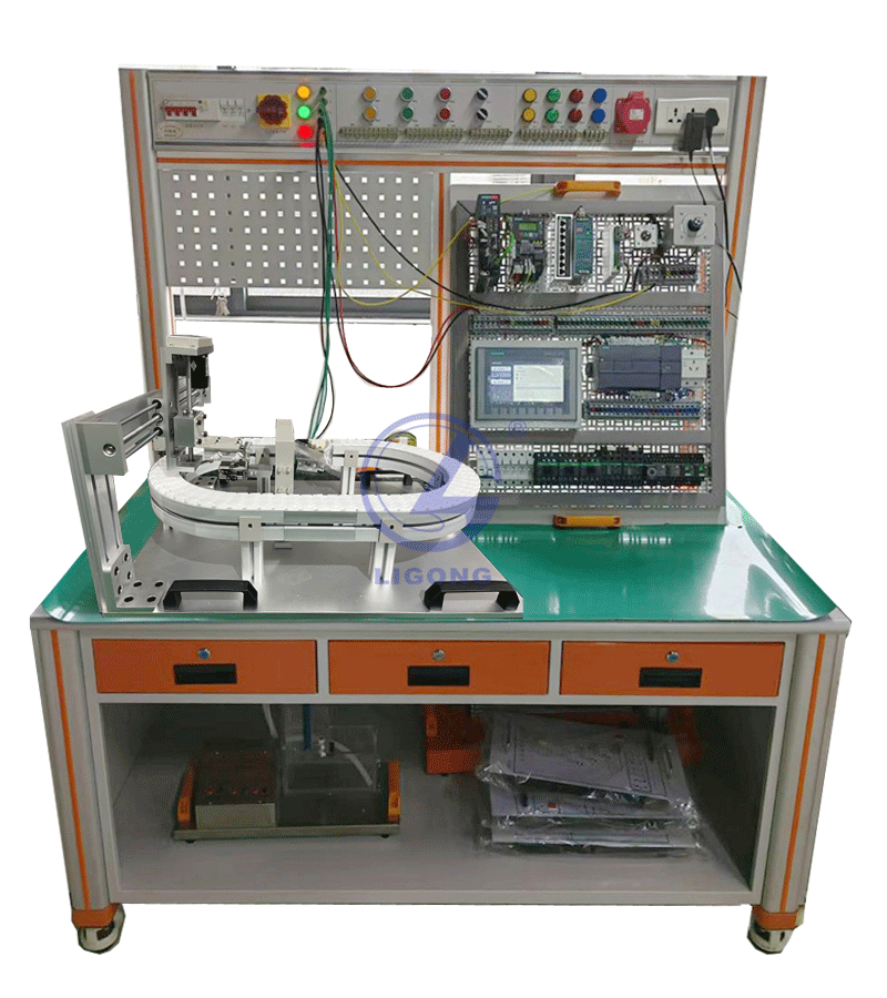 LG-JD02A型 機電一體化實(shí)訓工作站采用“模塊化”的設計理念,標準化電路接口、氣路接口和機械接口??傮w由工作臺、電氣控制掛板、環(huán)形輸送分揀應用模塊等構成。 工作站包含實(shí)訓平臺、控制掛板、應用模塊、電腦桌組成,實(shí)訓平臺采用優(yōu)質(zhì)鋁型材做骨架,鋁型材立柱與實(shí)訓桌面連接。左右兩側及后面封裝優(yōu)質(zhì)鋼板,正面設計儲物柜與抽屜。