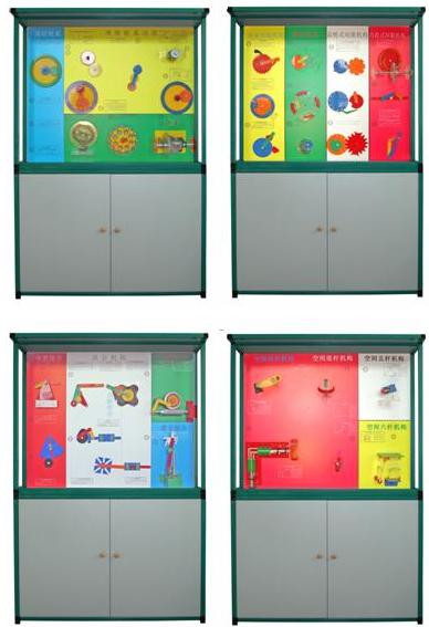 本設備是根據大中專(zhuān)院校、職業(yè)學(xué)校的教學(xué)大綱設計的機械陳列柜,《機械基礎》電化教學(xué)設備。陳列柜共分十個(gè)柜和一個(gè)電腦控制臺,進(jìn)行多媒體聲控同步解說(shuō)演示。由PC機電腦控制順序或任選運行每個(gè)柜模型動(dòng)作,同時(shí)電腦播放圖像或三維動(dòng)畫(huà)同步模型動(dòng)作。