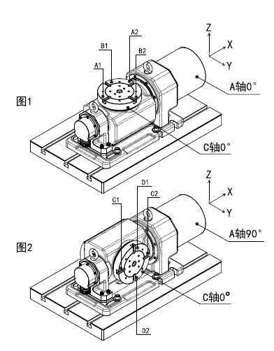 C軸:由伺服電機驅動(dòng)工作臺作360º回轉,當回轉到指定位置后,伺服電機制動(dòng)。需要轉動(dòng)時(shí),再由伺服電機驅動(dòng)工作臺回轉。