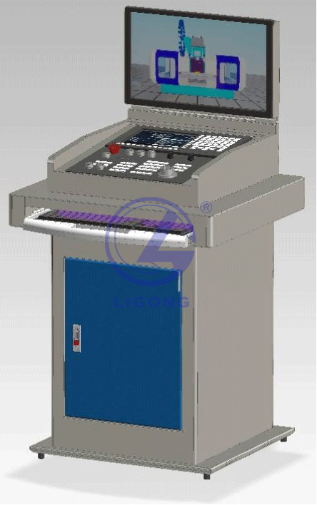 2、實(shí)訓平臺整體采用1.2mm鈑金工藝制作,下部有貯存空間用于安放電腦主機,中部安裝有鍵盤(pán)抽屜,抽屜上部平臺安裝數控操作系統,平臺整體采用鐵質(zhì)亞光密紋噴塑結構。