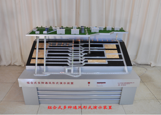 該煤礦礦井通風(fēng)綜合演示裝置(適合于二、三、四級),由井上下兩部分構成,地面示意現代化礦井的工業(yè)廣場(chǎng);井下利用發(fā)光管直觀(guān)顯示U+L、U、W、Y、雙Z型、Z型等多種采煤工作面的通風(fēng)型式。使學(xué)員進(jìn)一步了解各種采煤工作面的通風(fēng)及安全設施。