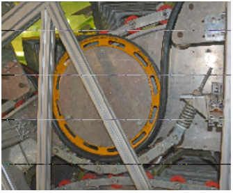 防逆轉裝置如下圖,裝置裝在扶梯上部驅動(dòng)位。在扶梯上行時(shí)凸輪順時(shí)針轉動(dòng),若扶梯發(fā)生異常情況而逆轉則凸輪逆轉,此時(shí)打桿使限位開(kāi)關(guān)動(dòng)作并使扶梯主剎動(dòng)作從而使扶梯停止,反之亦然。同時(shí)此功能具備手動(dòng)測試操作功能。