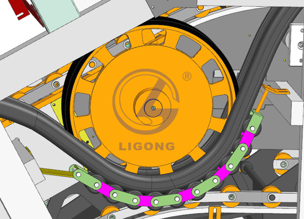 由扶手齒輪、扶手摩擦輪、張緊輪、托輥輪、壓輥輪、托帶鏈、回轉鏈行扶手導軌組成扶手帶動(dòng)力系統。