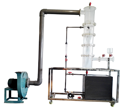 篩板吸收塔、抽風(fēng)機、水泵、調節閥、水箱、轉子流量計、測壓計、電路控制系統、不銹鋼框架、控制屏。