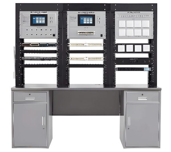 3、結構:設備采用全鋼柜式操作臺結構,主體上下分兩層,上層為三聯(lián)標準19寸面板結構,下層為柜體結構,可以存放設備及耗材;立柱板孔及背部板孔均采用標準化處理,能夠安裝各種符合標準的T工程網(wǎng)絡(luò )設備的安裝;配置智能語(yǔ)音播放系統一套,可以自動(dòng)播放語(yǔ)音解說(shuō)詞,方便實(shí)訓教學(xué)。