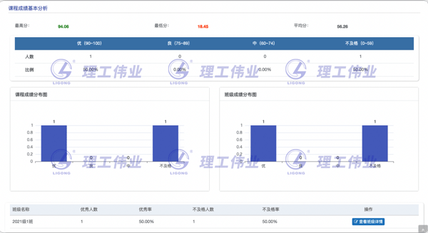 該模塊將課程目標的達成度結果,根據階段性成果維護的數據,進(jìn)行系統自動(dòng)計算,計算的結果按照課程達成度、課程目標達成度進(jìn)行逐級展示。系統支持針對達成度結果設置顏色預警,便于快速發(fā)現不達標的指標。且系統支持針對每一個(gè)課程目標的達成度結果,進(jìn)一步鉆取獲得每一個(gè)學(xué)生的實(shí)際結果數據,便于進(jìn)一步分析出問(wèn)題的學(xué)生和出問(wèn)題的步驟。