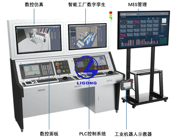 LG-DST03型 數控智造一體化仿真實(shí)訓系統是一套基于開(kāi)放式、模塊化的智能工廠(chǎng)半實(shí)物仿真系統,該平臺包含了一套真實(shí)的數控系統、PLC控制系統以及一套機器人運動(dòng)控制及示教器,能夠采用半實(shí)物仿真方式1:1的完成整個(gè)智能制造產(chǎn)線(xiàn)的從3D仿真、數控、PLC集成、機器人上下料以及工業(yè)互聯(lián)網(wǎng)集成,完成全流程的仿真與實(shí)訓教學(xué)。