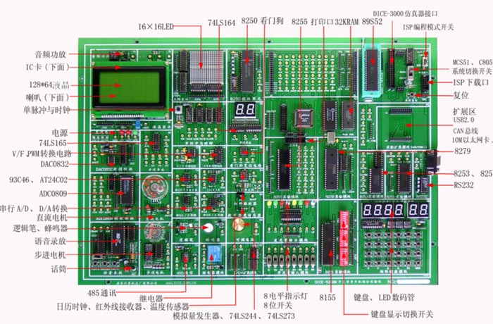 (5) 實(shí)驗電路單元盡可能獨立開(kāi)放,如開(kāi)放式鍵盤(pán), 開(kāi)放式顯示器,開(kāi)放式串口等,為適應多種方式實(shí)驗提供可能。